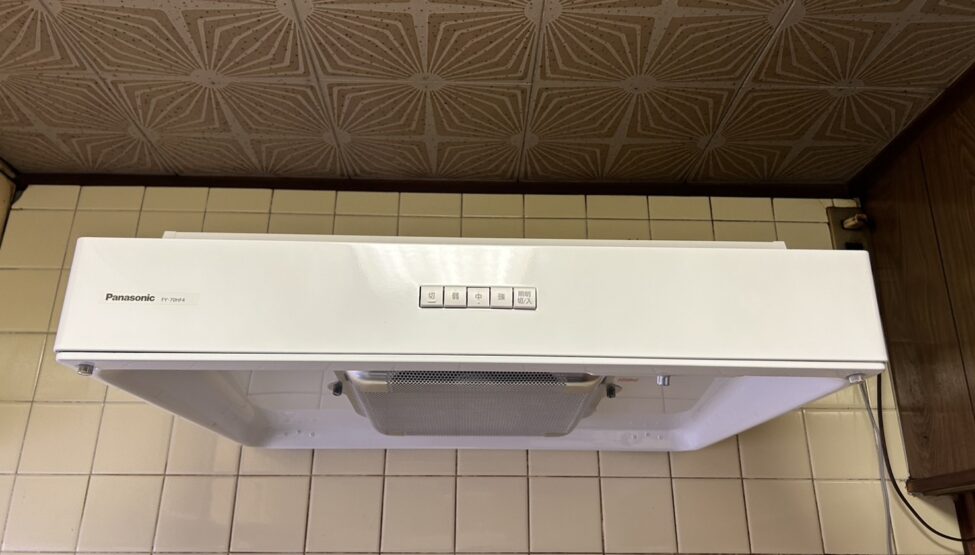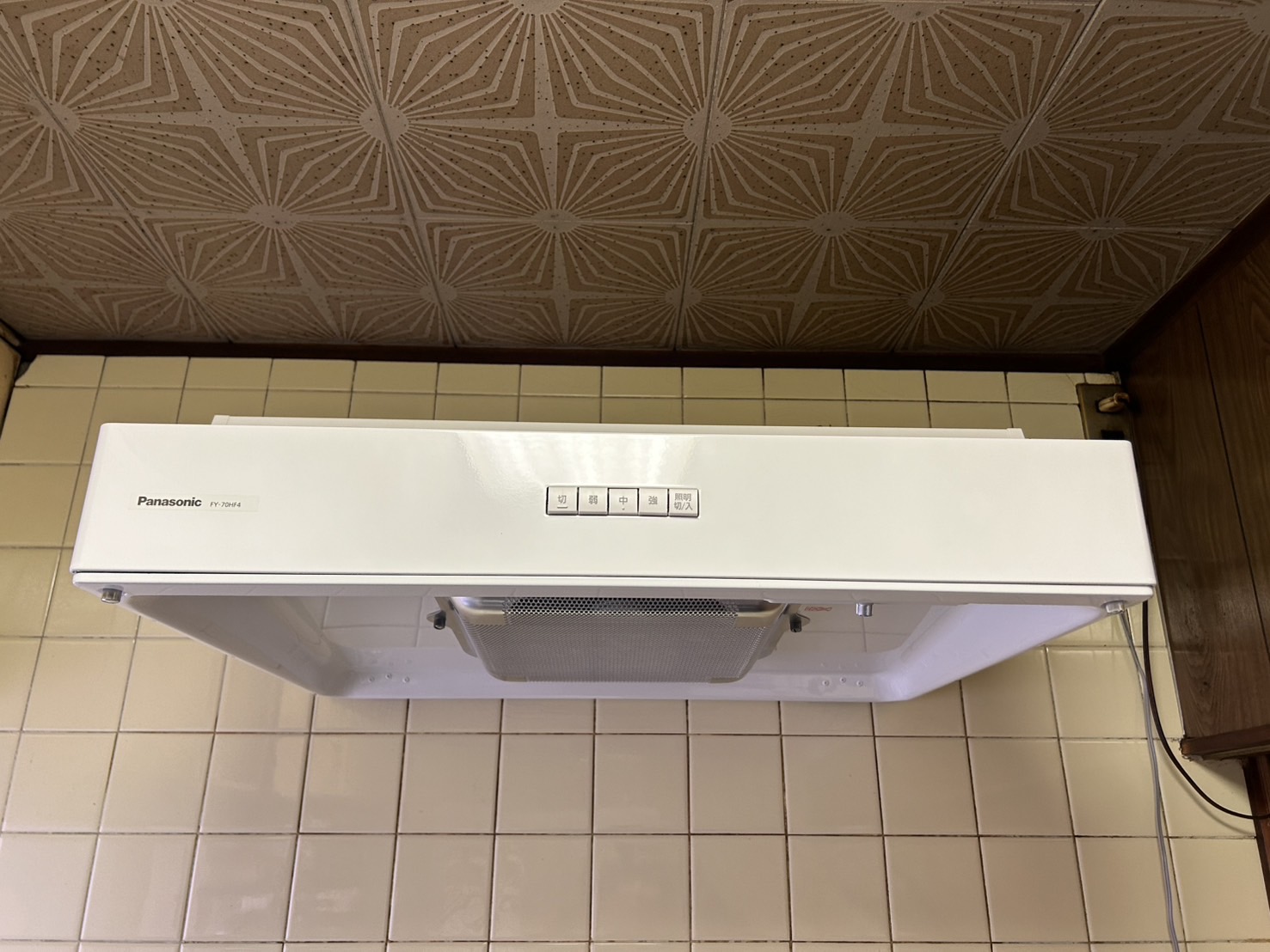 新しく設置したのは、パナソニック製の浅形レンジフード(FY-70HF4)です。このモデルは「ターボファン」を採用しており、静圧に強く、安定した排気能力を発揮します。