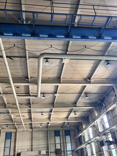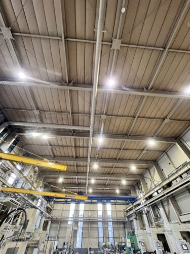- 工事内容:既存水銀灯・蛍光灯の撤去、LED高天井用照明の新設、LEDベースライト設置、照明回路の再構築、配線工事、最終照度測定
