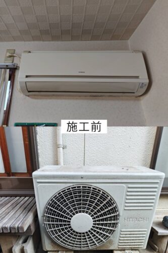 大分市でエアコンの効きを改善!古い日立製から最新の白くまくんへ交換した電気工事