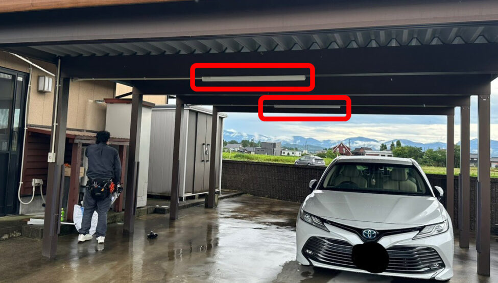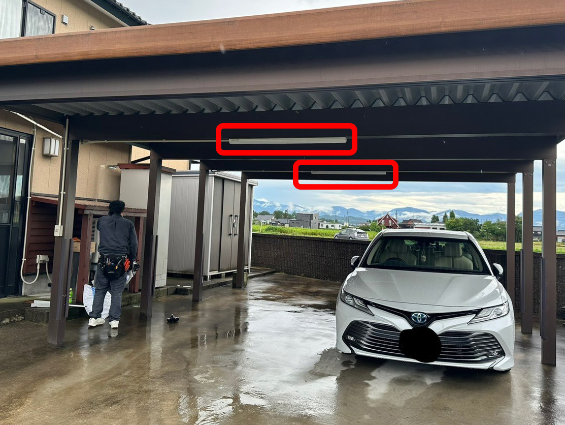 大分市でカーポートの照明交換工事|暗い駐車場をLEDで防犯対策